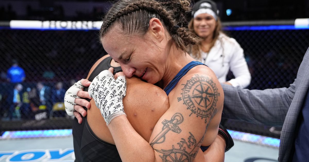 Hill busted open Loopy’s nose at the beginning of the second stanza. That prompted Godinez to blast a takedown, but Hill used a guillotine attempt to stand right back up. The fighters started to exchange jabs, but Hill was the one pressing forward. Hill clinched up and landed a takedown of her own, with some frenzied ground and pound, just before the bell.