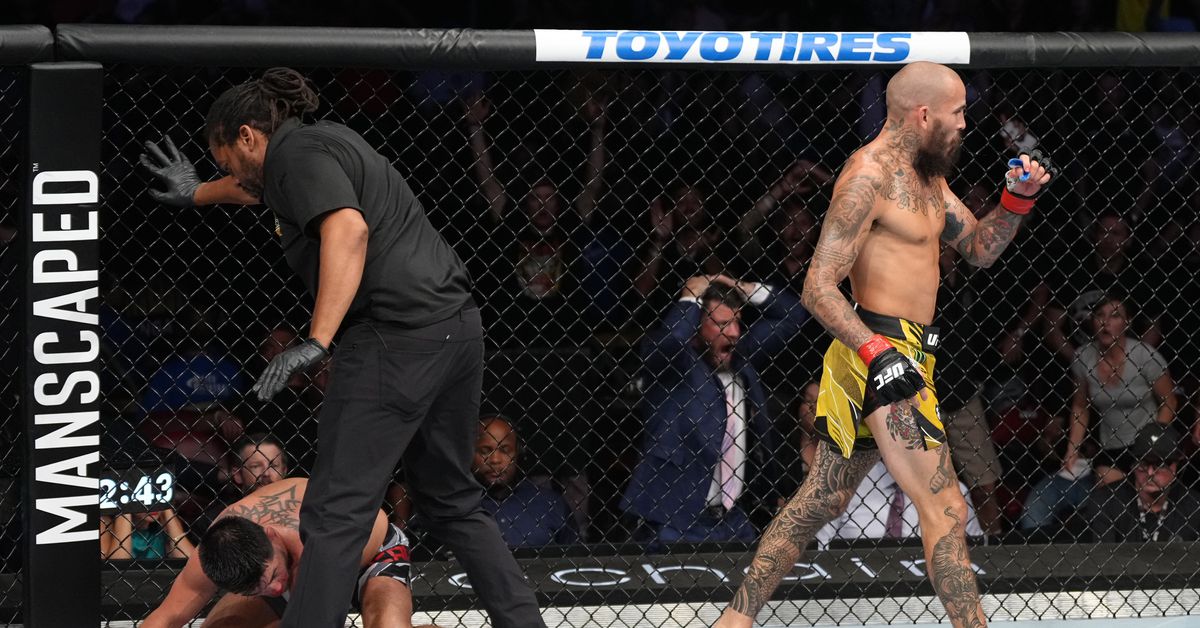 Cruz was delivering all sorts of volume to get things going, but Chito dropped him with a left hook towards the end of the opening round. Cruz got back to work in the second act, doing his usual funk and blitzing with flurries of punches. The third round saw Vera rock Cruz again, this time with a right hand, but Dom didn’t go down all the way. The fourth frame was where the incredible head kick landed right to the face, causing Cruz to fall face down. Chito pounced with some followup ground and pound to make sure his job was done to cement his fourth fight in a row.